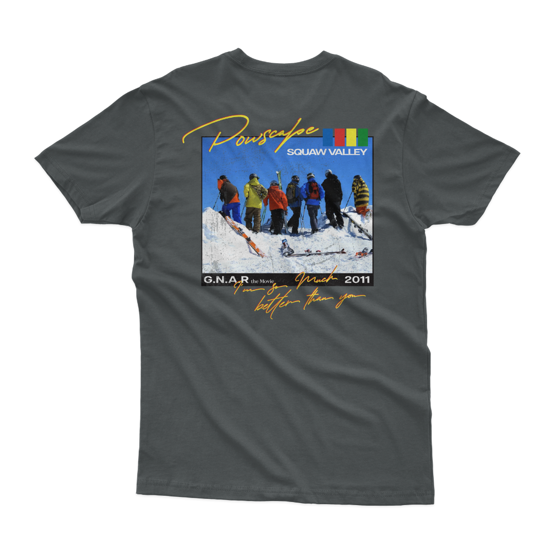 Shred the boundaries between legend and legacy with our Powscape G.N.A.R Tribute Tee. Saluting "G.N.A.R the Movie," this vintage black heavyweight tee embodies the irreverence and joy of the slopes. It's more than a tee; it's a piece of ski culture, a conversation starter, and your pass to join the ranks of those who live by the G.N.A.R. code. Grab it, wear it, and be the gnarliest rider on and off the mountain.